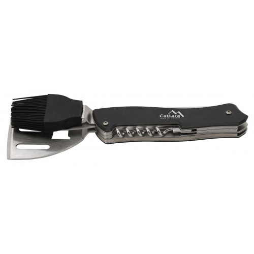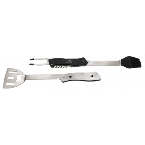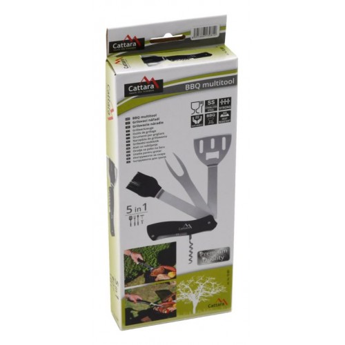 Grilovacie náradie 5in1 je praktický pomocník na grilovanie. Rukoväť je v úchopovej časti vybavená čiernym obložením pre pohodlnejší úchop. Rukoväť je možné jednoducho rozdeliť na dva nátroje. Nástroj je opatrený obracačkou, otváračom na korkové štuple, otváračom na zátky fliaš, vidlicou a mašlovačkou. Uplatnenie tak nájde v táborisku, v kempe, inde v prírode, ale aj doma pri grilovaní.