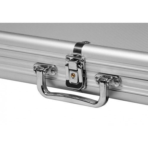 - 1 x hliníkový vypolstrovaný kufor na kolieskach s 2 uzamykateľnými zámkami a prackou