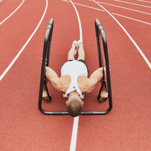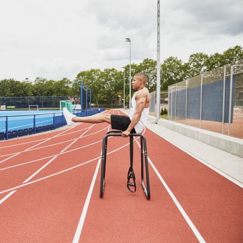 Široká škála cvikov na svaly hrudníka a tricepsov a množstvo ďalších tréningových možností sú možné vďaka posuvnému stojanu s rukoväťami. Efektívny tréning s vlastnou telesnou hmotnosťou. Zariadenie nezaberá veľa miesta a je preto ideálnym partnerom pre takmer všetky tréningové zariadenia.