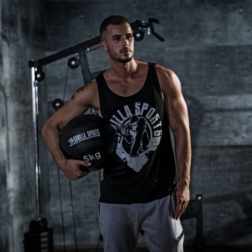 Gorilla Sports Kožený medicinbal, 5 kg, čierny