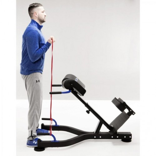 Trenažér MAXXUS Hyperextension Pro sa skladá z stabilného oceľového rámu, ktorý zaisťuje potrebnú bezpečnosť pri tréningu. Veľké kruhové nohy dodávajú najlepšiu možnú stabilitu. Zvýšte intenzitu cvičenia pomocou cvičebných pásov. Objevte novú rozmanitosť tréningu s Hyperextension Pro. Poťah noh je extra silný, aby bol tréning čo najpohodlnejší. Veľká kontaktová plocha ponúka dostatočnú oporu pre stehná. Môžete si tiež nastaviť výšku chráničov nôh a optimálne tak prispôsobiť hyperstanciu svojej individuálnej výške. Chraniče nôh sú namontované pod uhlom k sebe, aby udržali nohy v najlepšej možnej polohe. Lýtková vložka je pohodlne poťahovaná. Žebrovaná podnožka ponúka optimálnu podporu a zabráni sklznutiu nôh. Podnožka je vyrobená z extra silnej ocele. Chodidlá môžu byť umiestnené rovno alebo na boku, aby sa precvičili bočné svalové skupiny. Madlá sú ideálne na zaujatie správnej tréningovej polohy a uľahčujú nastupovanie a zoskakovanie. Pre menej trénované osoby slúžia madlá ako opora pri prvých tréningoch.