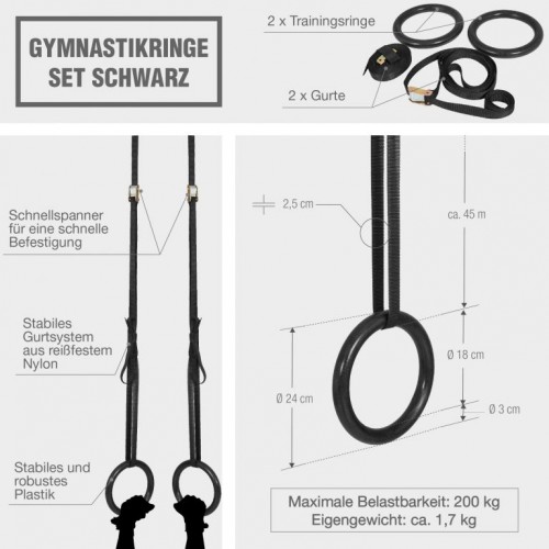 Gorilla Sports Gymnastické kruhy sada, čierne