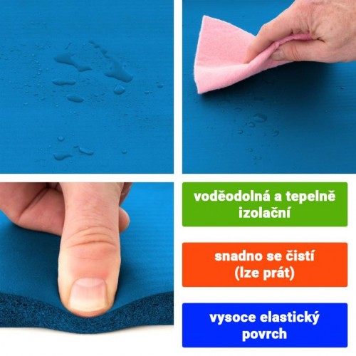 Vysoko kvalitná gymnastická podložka z peny šetrnej k pokožke. Je mimoriadne protišmyková a po použití ju možno ľahko znovu zrolovať. Fitness podložka je odolná proti roztrhnutiu a pošmyknutiu, je aj tepelne izolačná. Bez zmäkčovadiel (bez ftalátov). Tlmí nárazy a zvuky napr. pri skoku , takže môžete počas cvičenia chrániť svoje kĺby. Táto vysoko gymnastická podložka vás presvedčí mimoriadnou výškou. Je tiež vodeodolná, a preto sa ľahko zmýva. Táto podložka je vďaka svojim tepelnoizolačným vlastnostiam ideálna aj pre kempovanie a ako základňa na lôžko pre hostí.