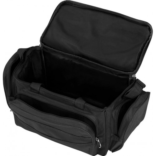Odolný materiál odpudzuje vodu a chráni obsah aj za nepriaznivého počasia. Pohodlné nosenie zabezpečuje mäkký polstrovaný ramenný popruh a dvojité uchá so suchým zipsom. Vďaka čiernemu vyhotoveniu pôsobí taška elegantne a zároveň nenápadne – hodí sa do prírody aj na organizované rybárske výpravy.