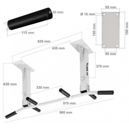S profesionálnou hrazdou MOVIT pre montáž na strop môžete vykonávať veľa rôznych cvikov, ktoré posilňujú Vaše paže, ramená, brucho a chrbtové svaly. 3 rôzne skupiny uchopenia umožňujú precvičenie rôznych svalových skupín a rôzne možnosti cvičenia. 6 rukovätí hrazdy zaisťuje bezpečné držanie a tréning bez pľuzgierov. Extrémne stabilná štvorhranná oceľová konštrukcia so zváranými uhlami je bezpečne pripevnená k stropu pomocou 8 záťažových hmoždiniek (sú súčasťou balenia) a umožňujú tak maximálne zaťaženie až 350 kg! S dodávaným upevňovacím materiálom môžete hrazdu okamžite pripevniť do stropu a Váš tréning môže začať.