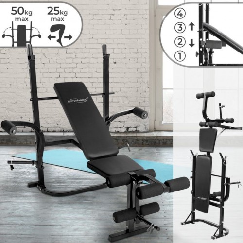 Physionics Multifunkčná posilňovacia lavica, čierna, 18 kg