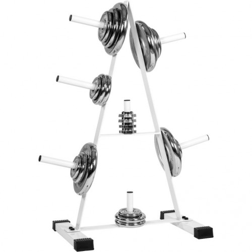 S týmto štýlovým stojanom na závažia si udržíte v posilňovni dokonalý poriadok a bezpečnosť. Vaše závažia budú mať konečne svoje miesto a budete ich mať kedykoľvek po ruke. Stojan je vybavený siedmimi držiakmi a umiestniť na neho môžete závažia, ktoré majú vnútorný priemer do 30 mm. Má zaoblené hrany a nohy stojanu sú vybavené gumovými podložkami, ktoré zabránia poškrabaniu podlahy.