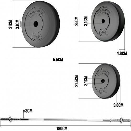 PHYSIONIC Vzpieračský set so závažím, 180 cm, 100 kg