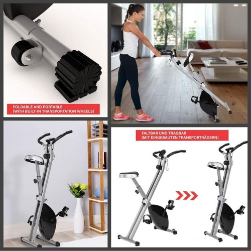 Zdravý životný štýl Vám uľahčí náš rotopéd. Toto fitness kolo zlepšuje Vašu fyzickú vytrvalosť, spevňuje svaly a zlepšuje celkovú pohodu. Okrem kompaktných rozmerov (42,5 x 77 x 115 cm), ktoré sú ideálne pre život v malých priestoroch, je možné tento fitness bicykel jednoducho zložiť a uschovať. Tréningové kolo s osemsmerne nastaviteľným odporom umožňuje efektívny vytrvalostný tréning pre užívateľov s maximálnou hmotnosťou až 120 kg. Sedadlo fitness bicykla je možné nastaviť do šiestich rôznych výšok. Počítačový displej LCD na rotopede monitoruje čas, rýchlosť, vzdialenosť, pulz a kalórie (2 batérie AA nie sú súčasťou dodávky).