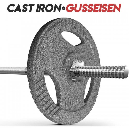 Liatinový záťažový kotúč s hmotnosťou 10 kg sa vďaka svojmu tvaru a vrúbkovaným rukovätiam ľahko uchopí a stane sa nepostrádateľnou súčasťou základnej výbavy každej domácej posilňovne. S týmito záťažovými kotúčmi a zodpovedajúcou tyčou môžete vykonávať rôzne silové cviky pre hornú aj spodnú časť tela. Závažie má otvor s priemerom 31 mm, ktorý je vhodný pre väčšinu činkových tyčí. Proces odlievania našich závaží zaručuje dlhú životnosť a odolnosť závaží.
