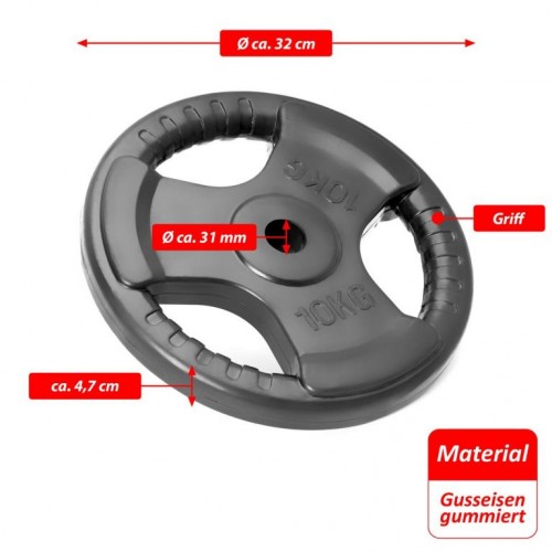 S týmto závažím môžete postupne zvyšovať intenzitu tréningu. Či už sa jedná o drepy, benchpress, mŕtvy ťah alebo zhyby, závažia sú ideálne pre domáci tréning a vďaka tvaru úchytu ich možno používať aj bez tyče. Odlievané záťažové dosky sú mimoriadne odolné a zostávajú rozmerovo stabilné aj pri náročnom používaní. Vďaka pogumovaniu sa materiál nepoškriabe tak ľahko ako napríklad závažia potiahnuté plastom. Tieto závažia sa používajú v kulturistike, silovom tréningu, crossovom tréningu a v oblasti rehabilitácie a fitness. Činky sú v súkromnej posilňovni nepostrádateľné.