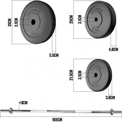 PHYSIONICS Vzpieračský set so závažím 165 cm, 60 kg