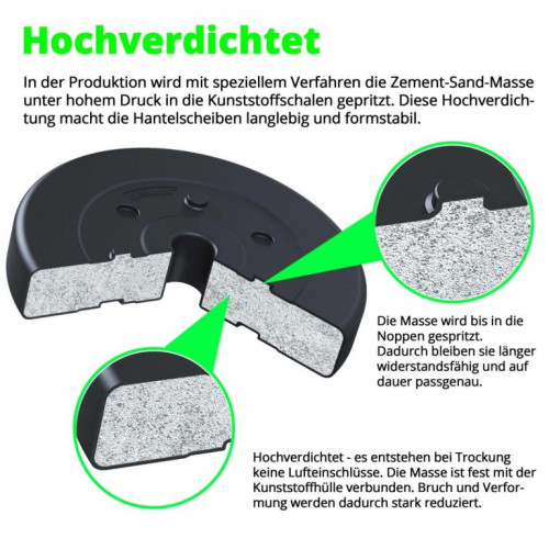 - materiál: plast naplnený vysoko stlačenou cementovou zmesou