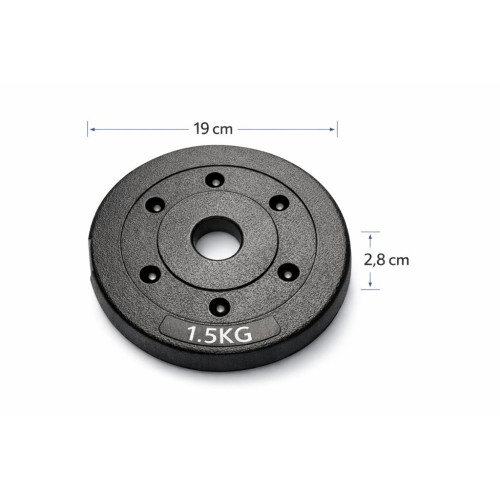 - sada kotúčov: 4 x 1,25 kg, 4 x 1,5 kg, 4 x 2 kg