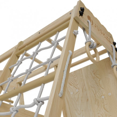 Celá konštrukcia je z kvalitného borovicového dreva a odolá každodennému šanteniu až troch detí naraz. Praktický skladací systém umožní preliezačku rýchlo zložiť a uvoľniť miesto, keď práve nie je v prevádzke. Vďaka kombinácii prírodného vzhľadu a farebných detailov sa navyše stane ozdobou každej detskej izby.