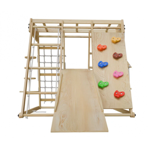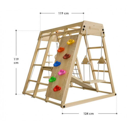 Premeňte detskú izbu na miesto plné dobrodružstva! Drevené indoor ihrisko ponúka malým objaviteľom nespočet možností k hre - môžu liezť po farebnej lezeckej stene, kĺzať sa, hojdať na hojdačke či trénovať obratnosť na povrazovom rebríku. Kompaktná veľkosť zaistí, že sa ihrisko hodí aj do menšej izby a skladacia funkcia uľahčí ukladanie, keď je potrebné uvoľniť priestor.