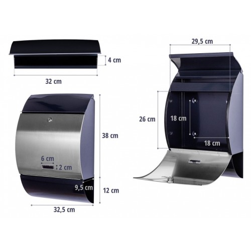 Poštová schránka má veľký otvor na listy, a preto je vhodná aj pre veľké listy a silnejšie obálky. Naša poštová schránka je tiež vybavená novinovou rolou, ktorá chráni noviny a brožúry pred poveternostnými vplyvmi. Je tiež vybavený štítkom a gumovými lištami, ktoré chránia pred vlhkosťou a nečistotami.