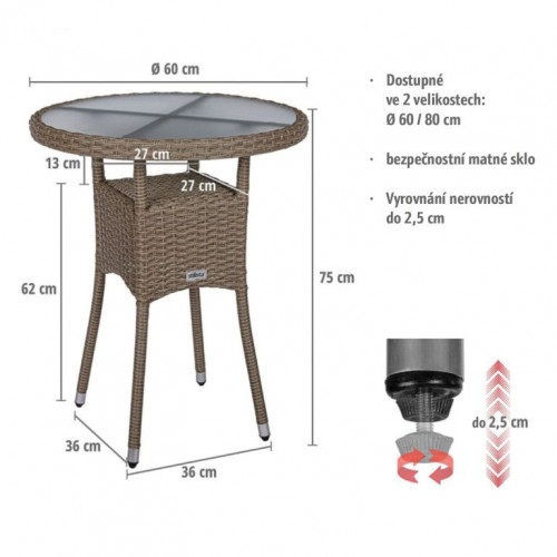 - rozmery stola: 60 x 75 cm (priemer x výška)