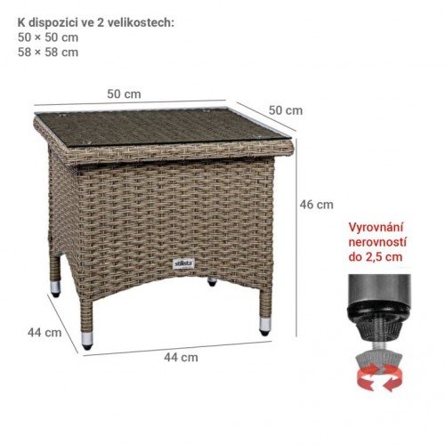 • rozmery stolíka: 50 x 50 x 42 cm (d x š x v)