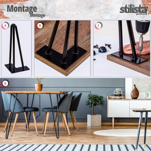 Stolové nohy z rady Stilista presvedčia svojim jednoduchým a nadčasovým dizajnom. Môžete si tak svoj nábytok navrhnúť kreatívne a individuálne. Nohy sú vyrobené z 12 mm kruhovej ocele a navyše majú pevnú základovú dosku. Mierny sklon nôh poskytuje dodatočnú stabilitu.