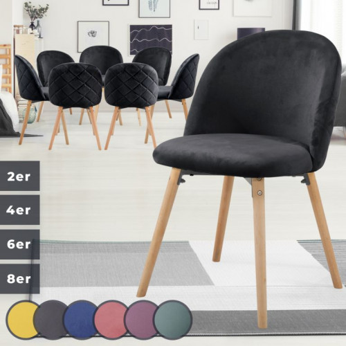 MIADOMODO Sada jedálenských stoličiek zamatové, čierna, 8 ks