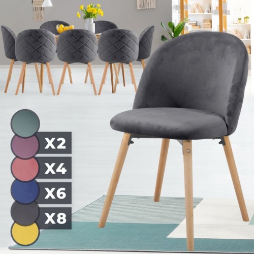 Nábytok v škandinávskom štýle je už nejakú dobu trendom ako v domácnostiach, tak aj v komerčných zariadeniach. Tieto stoličky v modernom dizajne majú nohy z bukového dreva, ktoré zaistia skvelú stabilitu a príjemný zamatový poťah pre to správne posedenie.