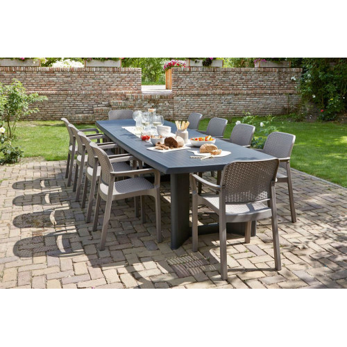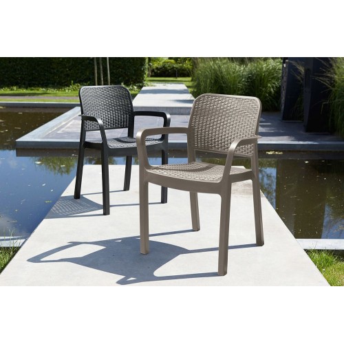 Záhradné plastové kreslo vo farbe capuccino. Moderný design, ľahká údržba, vysoká odolnosť.