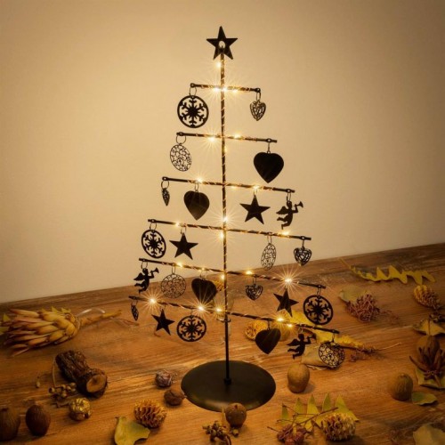 Vianočný kovový strom - čierny, 25 LED, teple biela