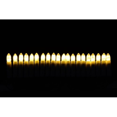 Chcete vyčarovať rovnaké Vianoce ako keď ste boli ešte deťmi? Nie je nič jednoduchšie. Použite pri zdobení vianočného stromčeka tieto sviečky - obsahujú 20 LED diód, ktoré vyžarujú teplé biele svetlo. Na stromček ich upevníte pomocou svoriek a svetlo vyžarujú na vzdialenosť cca 40 cm. Sviečky sú vhodné iba pre vnútorné použitie!