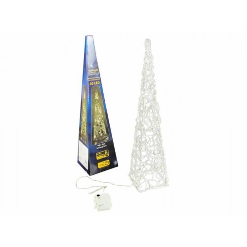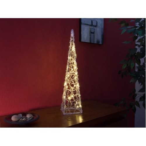 Vianočný akrylový ihlan 60 cm - teple biely, na batérie