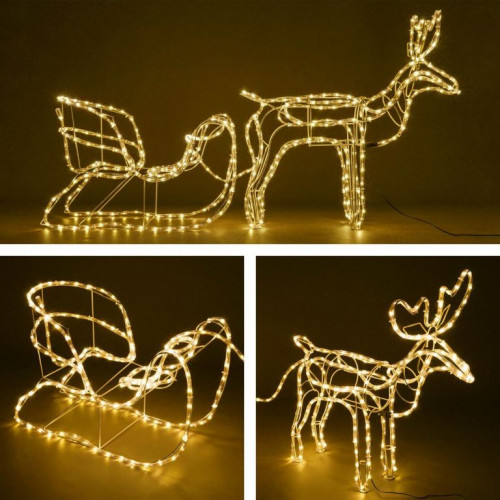 Detailne prepracované sobie sane s celkom 504 teple-bielo svietiacimi LED diódami dodávajú veľa vianočnej atmosféry. 8 funkcií s pamäťovou funkciou umožňuje pestrý program osvetlenia.