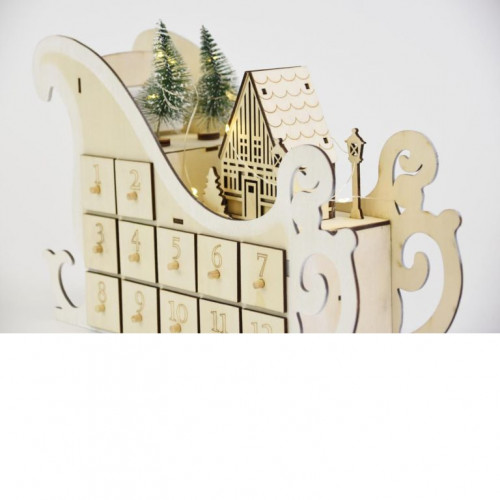 Vianočný adventný kalendár, sane, 10 LED, na batérie
