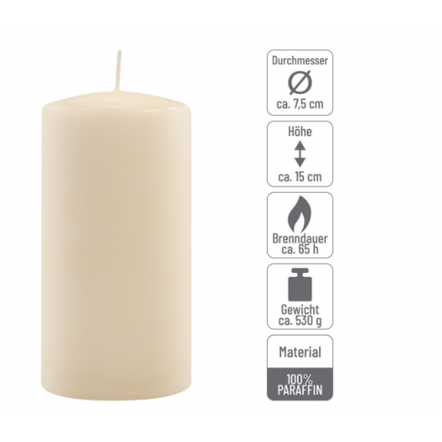 Sada stĺpových sviečok, 15 cm, Ø 7,5 cm, krémová, 4 ks