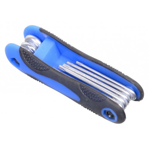 Sada torx/hviezdičiek v praktickom prevedení obsahuje 8 ks jednotlivých kľúčov, a síce tieto typy: T9; T10; T15; T20; T25; T27; T30; T40. Gumová rukoväť pre pohodlnejšiu manipuláciu a prácu.