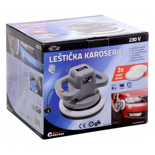 Napájanie 230 V, vymeniteľné leštiace poťahy kotúča na nanášanie aj leštenie. Súčasťou balenia sú aj dva kryty (návleky) na leštičku.