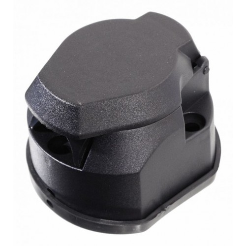 Zásuvka pre ťažné zariadenie automobilu podľa normy DIN 11446, 13 pólov. Zásuvka je vybavená tesnením a krytom, ktorý sa automaticky (pružinou) uzatvára.