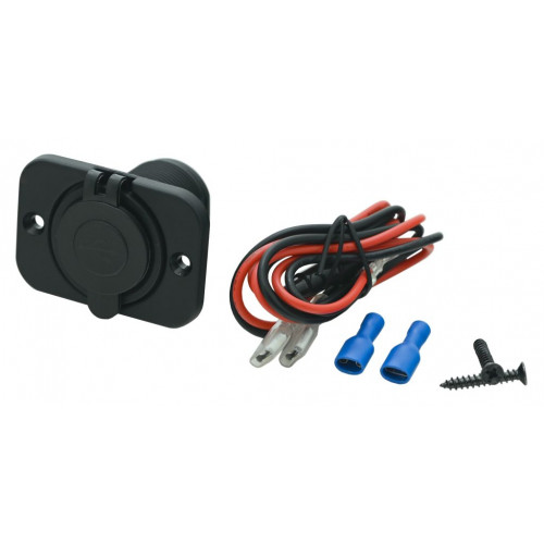 Jednoduchá montáž. Na vopred určené miesto vyrežte otvor pre zásuvku a pomocou skrutiek upevnite podložku zásuvky. Zásuvku prepojte s 12V napájaním vozidla pomocou priloženej kabeláže. Zasuňte zásuvku a na vnútornej strane zaistite skrutkovacím prstencom.