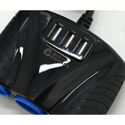 Roztrojka zásuvky automobilového zapaľovača 12/24 V s 3x USB konektorom, umožňuje pripojenie viacerých spotrebičov k jednej štandardnej zásuvke zapaľovača v automobile a zároveň napájať alebo nabíjať USB zariadenie z 12V alebo 24 V zásuvky automobilového zapaľovača. Inštalácia sa vykoná jednoduchým zasunutím roztrojky do zásuvky.