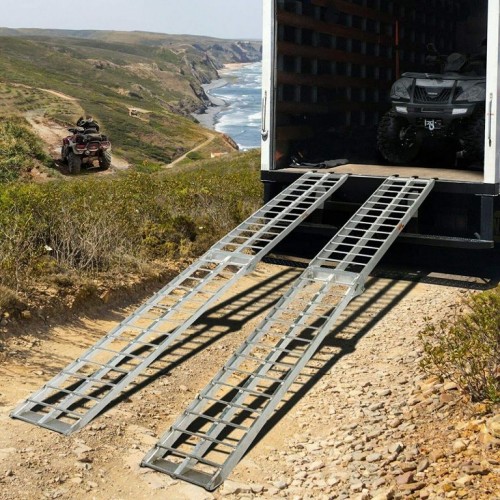 Robustná konštrukcia nájazdovej rampy má vďaka zváraným spojom veľmi stabilné prevedenie. Jej prednosťou je nízka váha a protišmykový povrch. Hliníková rampa s plastovými krytkami je skladacia. Nosnosť tejto rampy je 340 kg. Rampa má variabilné použitie, je vhodná pre nakladanie motocyklov, malých vozidiel, karavanov, prívesov atď.