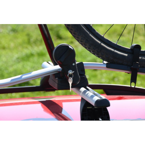 Upevnenie bicykla sa vykonáva jednoducho pomocou rýchloupínacieho držiaka rámu a pätiek kolies s upínacími prackami. Bicykel aj samotný nosič sú uzamykateľné, tým zabraňujú možnej krádeži. Nosič je vhodný pre všetky bicykle s hmotnosťou nepresahujúcou 15 kg, s priemerom okrúhleho rámu 22-80 mm, alebo oválneho max (80x100 mm). Rameno upevnenia bicykla s ovládačom je možné otočiť na druhú stranu, rovnako tak je možné otočiť aj pätky uchytenia bicykla pre jednoduchšie ovládanie pri montáži na ľavú alebo pravú stranu strechy automobilu.