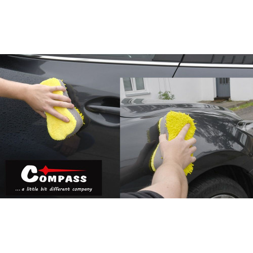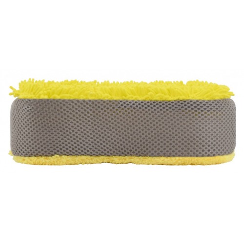 Obojstranná špongia so strapcami z mikrovlákna na jednej strane, jemnou vrstvou na druhej strane a sieťovými bokmi vhodná na komplexné umývanie. Umývacie špongie tvoria štandard, ktorý je použitím mikrovlákenných strapcov prekonaný, vďaka šetrnosti a dôkladnejším umývacím schopnostiam. Strapce z mikrovlákna absorbujú viac vody a nečistôt, než bežné umývacie pomôcky. Vďaka tomu chráni chúlostivú karosériu pred poškriabaním. Mikrovlákenné strapce umožnia použiť špongiu v suchom stave, ako účinnú prachovku. Jemná vrstva zadnej strany špongie, je v suchom stave vhodná napríklad na aplikáciu a roztieranie voskov i jemných lešteniek. Boky sú navyše opatrené mriežkovanou štruktúrou na očistenie odolných nečistôt. Špongia so strapcami je ideálna na použitie metódou dvoch vedier, kedy v jednom je voda s autošampónom a v druhom samotná voda na oplach zachytených nečistôt na špongii.