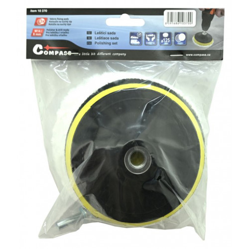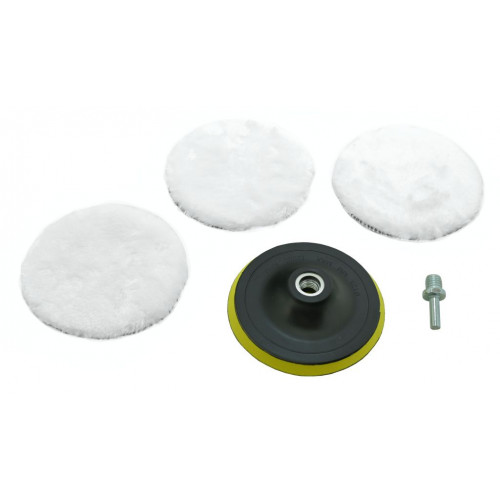 Súprava na jemné leštenie, voskovanie a aplikáciu sealantov laku automobilu. Súčasťou balenia sú 3 kusy chlpatých leštiacich kotúčov, unášací disk a adaptér M14/8 mm. Kotúče aj disk majú šírku 125 mm. Unášací disk je potom opatrený závitom M14 na upevnenie do bežnej leštičky, prípadne je možné pomocou adaptéra so stopkou 8 mm uchytiť do vŕtačky. Kotúče je možné ľahko prichytiť na unášací disk pomocou suchého zipsu.