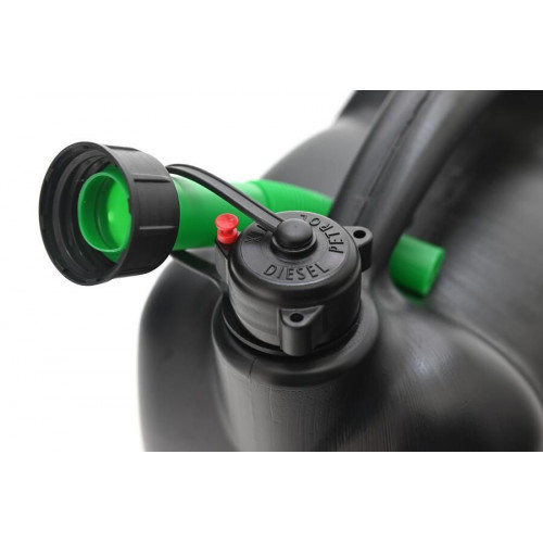 Produkt je vytvorený z odolávajúceho plastu čierne farby, s ergonomicky tvarovaným madlom na vrchnej časti tela. Rozmery prepožičiavajú kanistru objímny priestor. Súčasťou kanistra je lievik vybavený ohybným krčkom a viečkom, ktorého súčasťou je kolík, s ktorým je možné vyznačiť druh pohonných hmôt (benzín / nafta / zmes paliva).