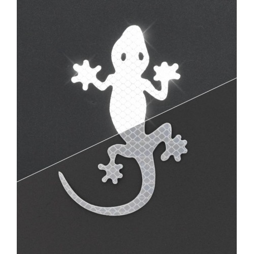 Samolepiaci dekor s reflexnými vlastnosťami v podobe Geckona (jašterice). Samolepka je vhodná na nalepenie na očistené neporézne povrchy. Dekor je možné nalepiť aj na mierne tvarované povrchy. Prilepenie je ľahké a rýchle.