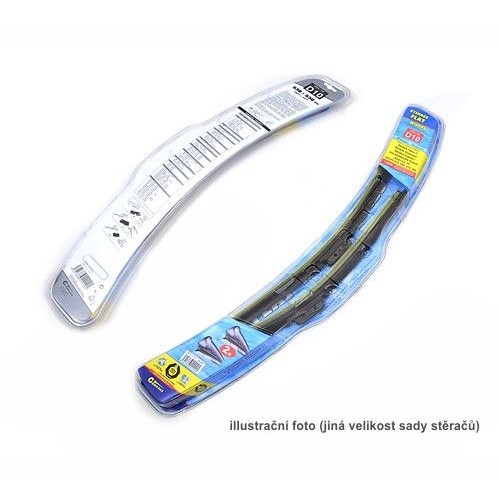 Vysoko kvalitný pružný člen plochého stierača zaisťuje rovnomerný tlak grafitového britu v celej jeho dĺžke, čo zamedzuje rozmazávaniu nečistôt a vytváraniu pruhov. Tento typ plochého stierača je osadený gumičkou s čiernym grafitom, umožňuje aj jej výmenu. Dĺžky stieračov a adaptéry na uchytenie na rameno stierača sú prispôsobené vybraným vozidlám.