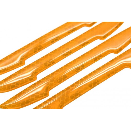 Chránič dverí s reflexnými vlastnosťami so silnou lepiacou časťou a odolným povrchom. Samolepka je vhodná na nalepenie na očistené neporézne povrchy. Lepenie je možné aj na mierne tvarované povrchy. Prilepenie je ľahké a rýchle.