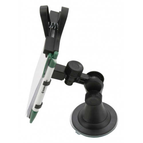 Praktický držiak poznámkového bloku na upevnenie na sklo, či na palubnú dosku. Telo držiaka je opatrené 2x kĺbmi s aretačnými prstencami, vďaka ktorým je možné nastaviť potrebný uhol bloku. Silná prísavka spoločne s nalepovacou plôškou pre palubnú dosku, zaisťuje prichytenie aj na porézne palubné dosky. Zariadenie je vybavené bočným držiakom s perom a samotným blokom s rozmermi 8,5 x 11,5 cm.