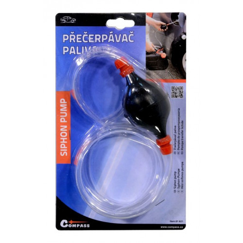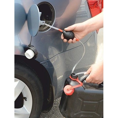Prečerpávač, na ručné prečerpávanie paliva s hadicou dĺžky cca 180 cm. Uvoľnite prst a nechajte kvapalinu samospádom vytekať do cieľovej nádoby. Aby mohla kvapalina tiecť samospádom, musí byť cieľová nádoba umiestnená nižšie, než nádoba zdrojová.