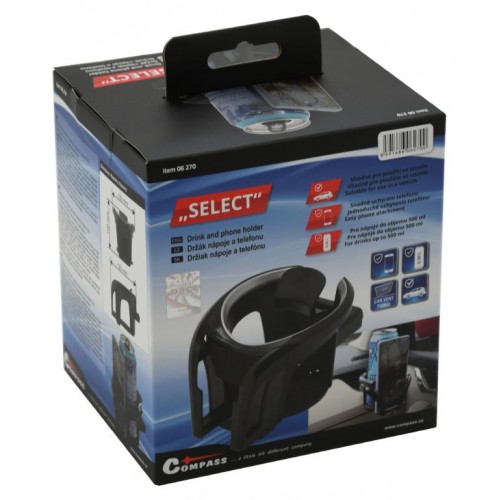 Držiak je vhodný na umiestnenie telefónu a nápoja súčasne. Telefón je možné jednoducho do držiaka vložiť jednou rukou ai napriek tomu je zabezpečený pred nechceným pohybom pomocou pružinového systému. Nápoje sú tiež zaistené pred voľným pohybom a vyliatím. K držiaku je pre úspešnú a jednoduchú inštaláciu priložená sada nastaviteľných adaptérov do mriežky ventilácie, sada na priame uchytenie za mriežku ventilácie a podpera so samolepiacou vrstvou. Konštrukcia zabezpečuje vysokú stabilitu a vďaka použitiu podpery rovnomerne rozdeľuje zaťaženie a bráni tak poškodeniu mriežky ventilácie.