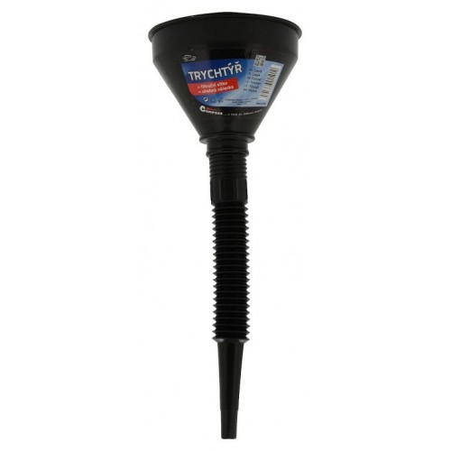Lievik na prelievanie kvapalín, vybavený zabudovaným sitkom a skrutkovacím lievikom. Lievik dĺžky 25 cm je ohybný a ponúka tak pohodlie pri manipulácii a prelievaní. Lievik je zhotovený z odolného plastu čiernej farby s priemerom 143 mm.